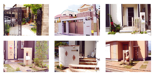 他にも、様々な素材を組合せ、従来の外構・エクステリア業者とは一味違った個性的なエントランスをご提案しています。